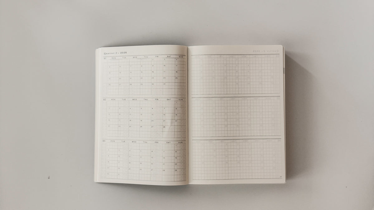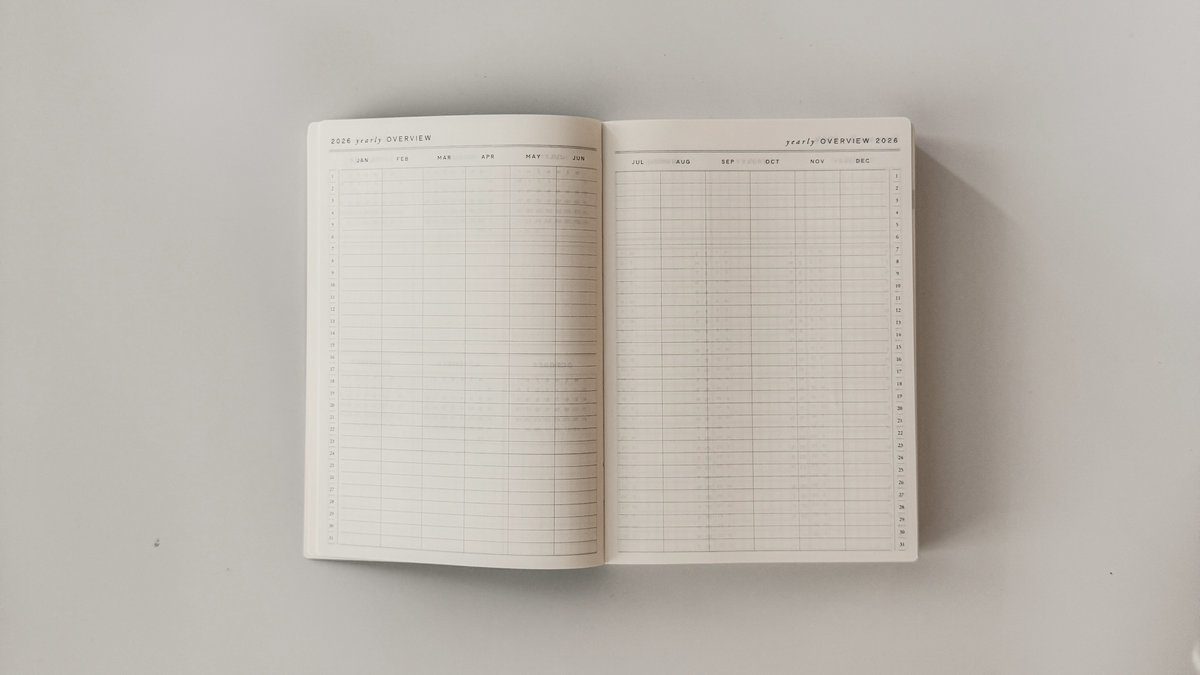 Bleib organisiert und inspiriert im Jahr 2026 mit unserem meistverkauften B6 CHAPTER '26 Yearly Notebook! Dieses Notizbuch wurde für eine effiziente Jahresplanung entwickelt und bietet die perfekte Balance zwischen Tragbarkeit und Geräumigkeit. Es bietet dir ausreichend Platz zum Planen und ist gleichzeitig kompakt genug, um es überallhin mitzunehmen.