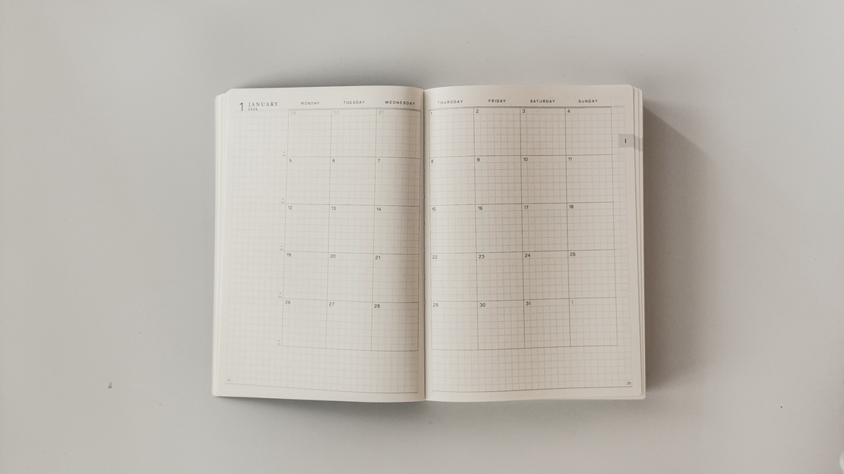 • Quarterly Pages: 4 pages (3 vertical months per pages)