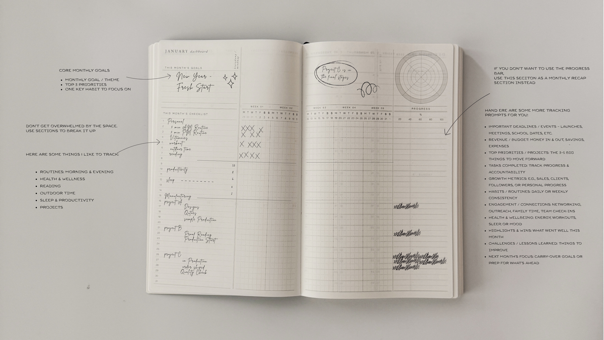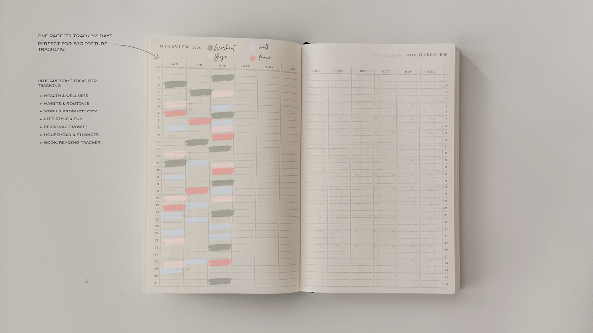 *For a detailed walk through of the Yearly Notebook, please check out our YouTube Video.