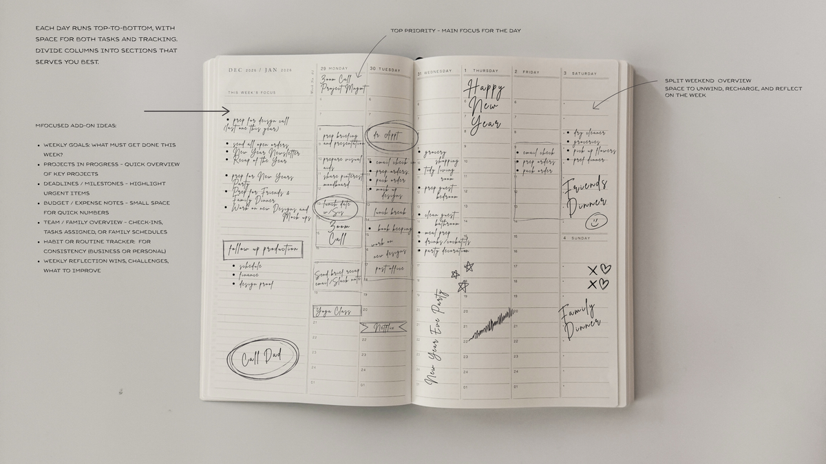 Whether you’re managing a business, structuring your workflow, or simply staying on top of daily priorities, the A5 Slim Manager’s Notebook keeps everything organized in a sleek, elegant format!