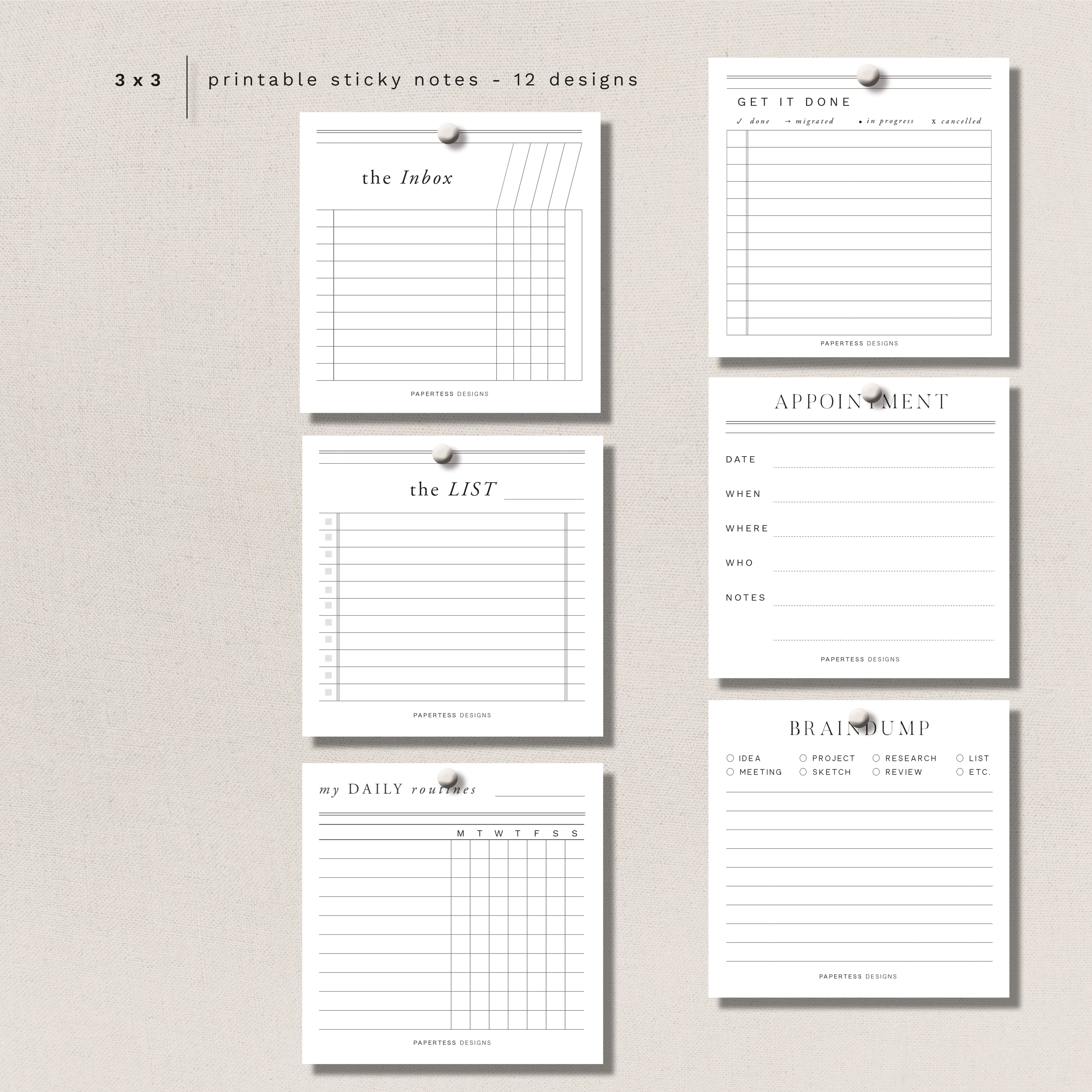 Our printable sticky notes combine functionality with aesthetics. Easily print them at home on sticky note paper or regular sheets, making them perfect for quick reminders, habit tracking, and creative planning. Our printable sticky notes help bring order and inspiration to your daily routine.